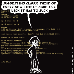 spigot: SUGGESTING CLAUDE THINK OF EVERY NEW LINE OF CODE AS A DICK IT HAS TO SUCK